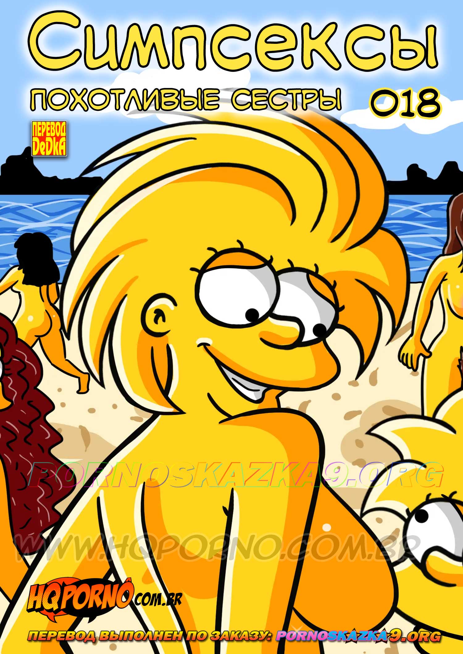 Порно комикс Симпсексы. Часть 18. Похотливые сестры. Симпсоны разделились на нудистском пляже, Мардж и Барт вместе, сестры тоже вместе, а...